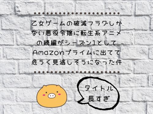なろう系の乙女ゲームの破滅フラグしかない悪役令嬢に転生してしまった系のアニメ系のシーズン2系のやつがAmazonプライム系で始まってますー!
